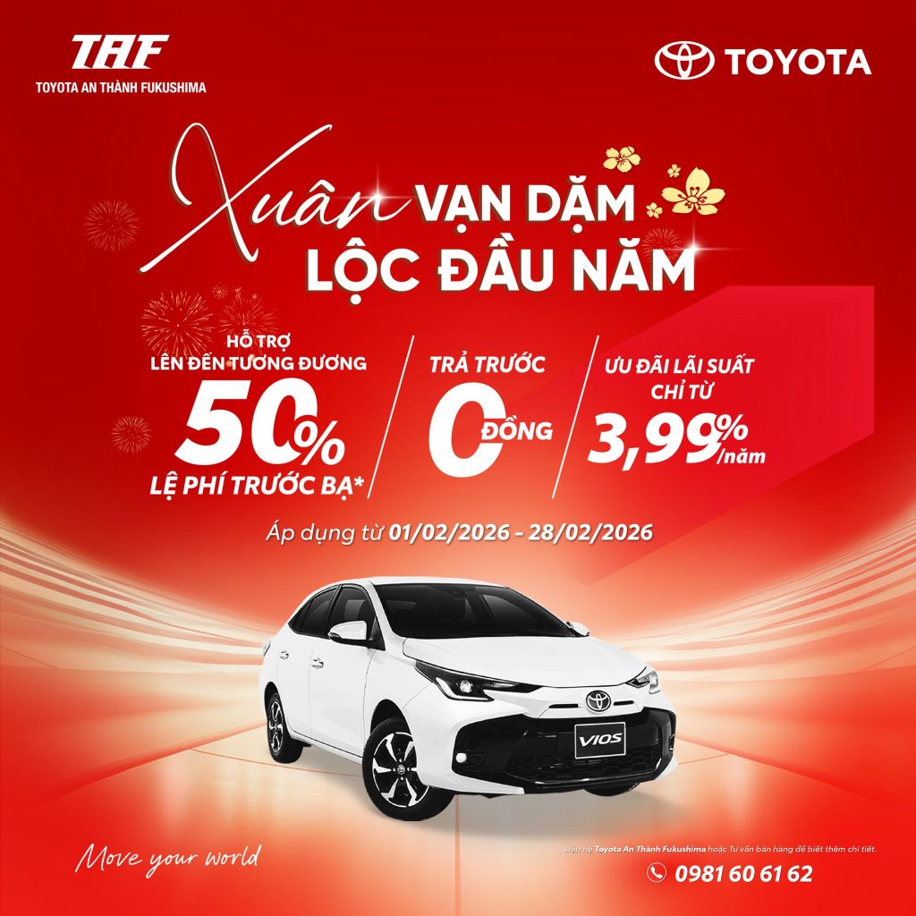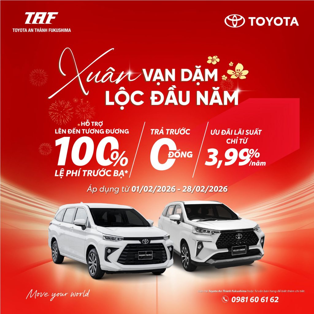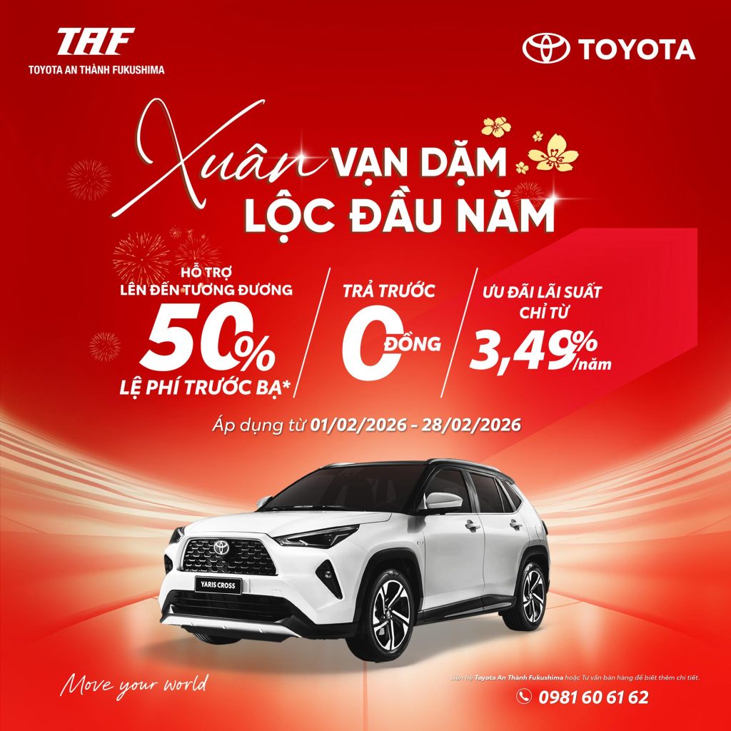 Toyota An Thành Fukushima – TAF triển khai chương trình khuyến mãi siêu ưu đãi dành cho khách hàng mua xe Toyota mới trong tháng 02.2026. Cụ thể như sau: