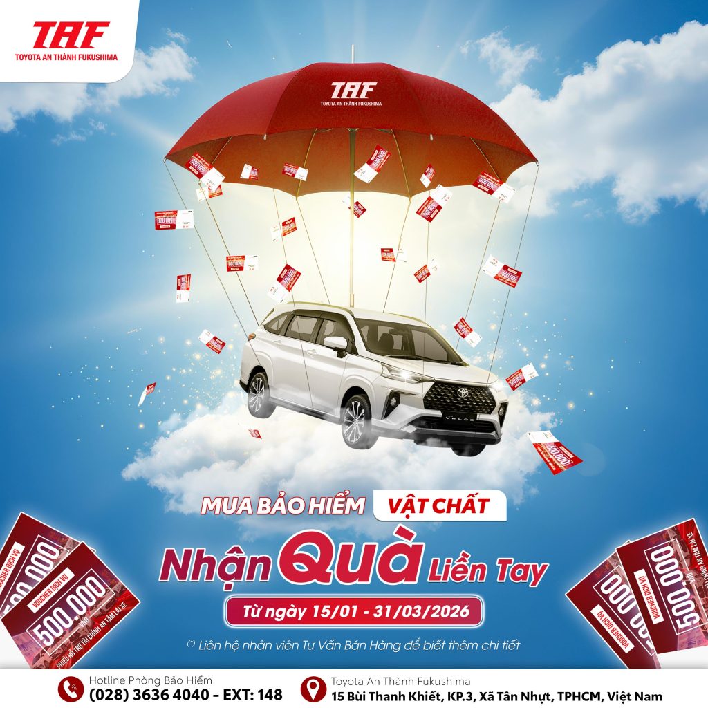 Toyota An Thành Fukushima – TAF triển khai chương trình khuyến mãi dành cho khách hàng mua Bảo hiểm vật chất ô tô. Cụ thể như sau: