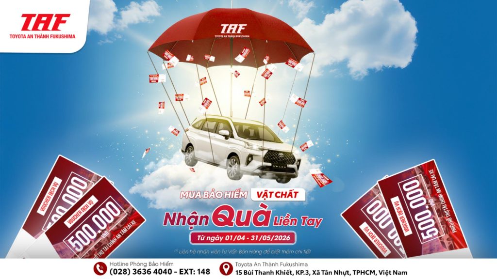 Toyota An Thành Fukushima – TAF tiếp tục triển khai chương trình khuyến mãi dành cho khách hàng mua Bảo hiểm vật chất ô tô. Cụ thể như sau: