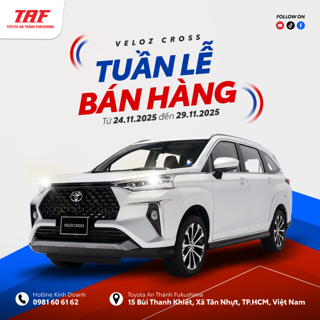 Sự kiện Toyota: Tuần lễ bán hàng ưu đãi Veloz Cross tháng 11.2025