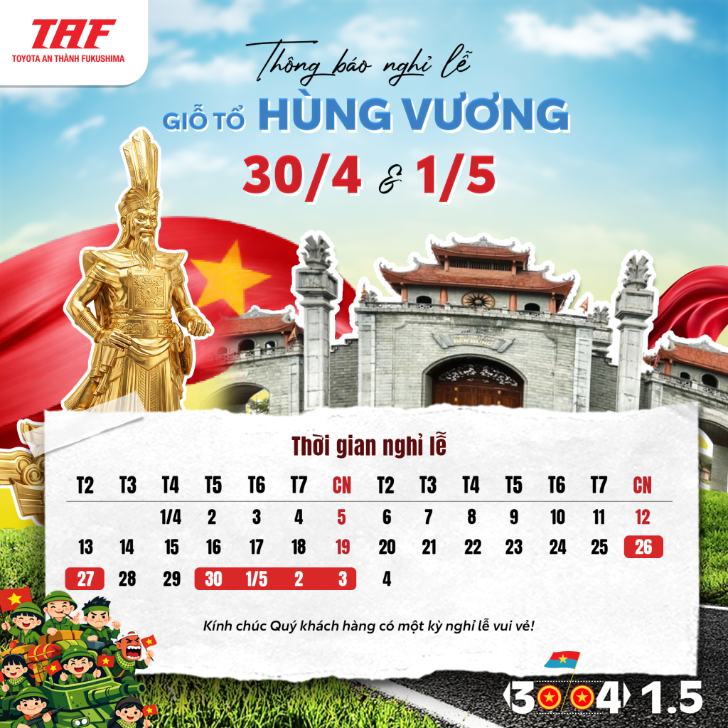 Toyota An Thành Fukushima thông báo lịch nghỉ Lễ tháng 4.2026