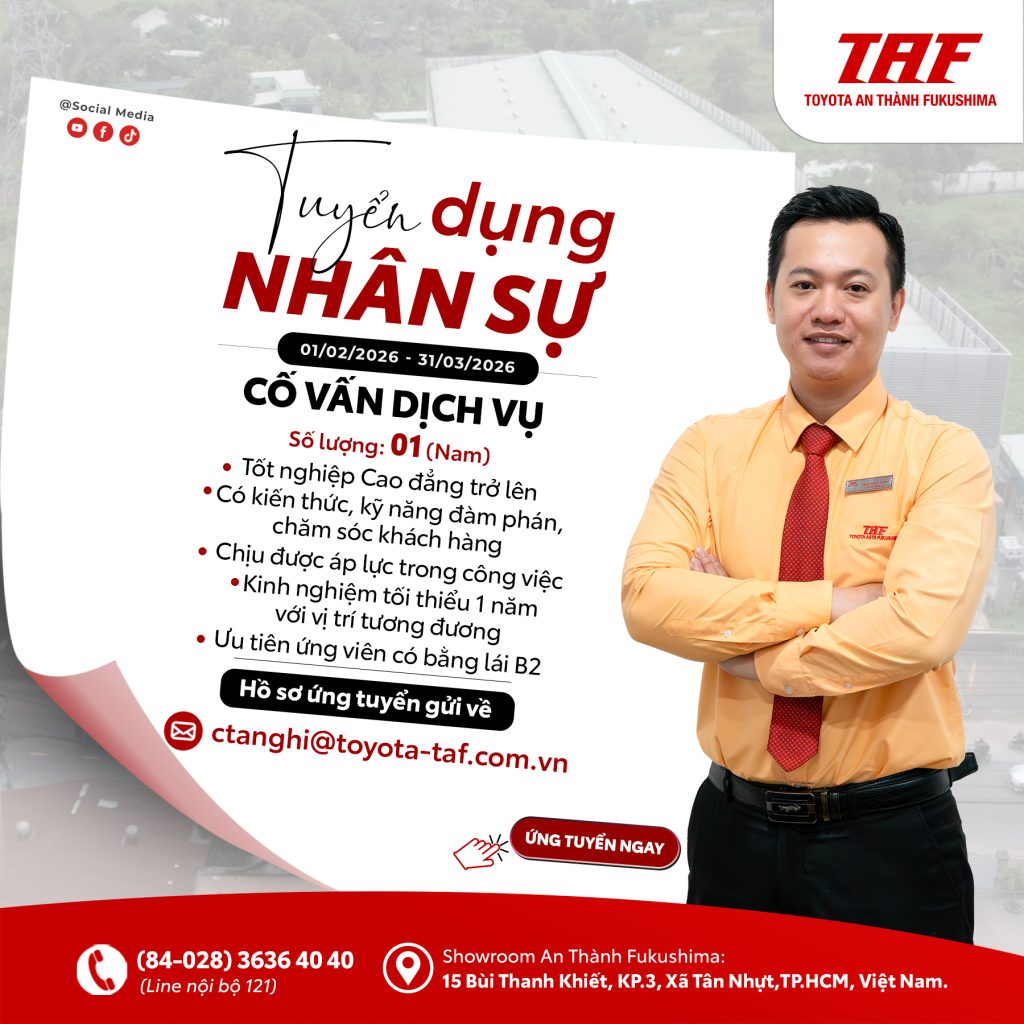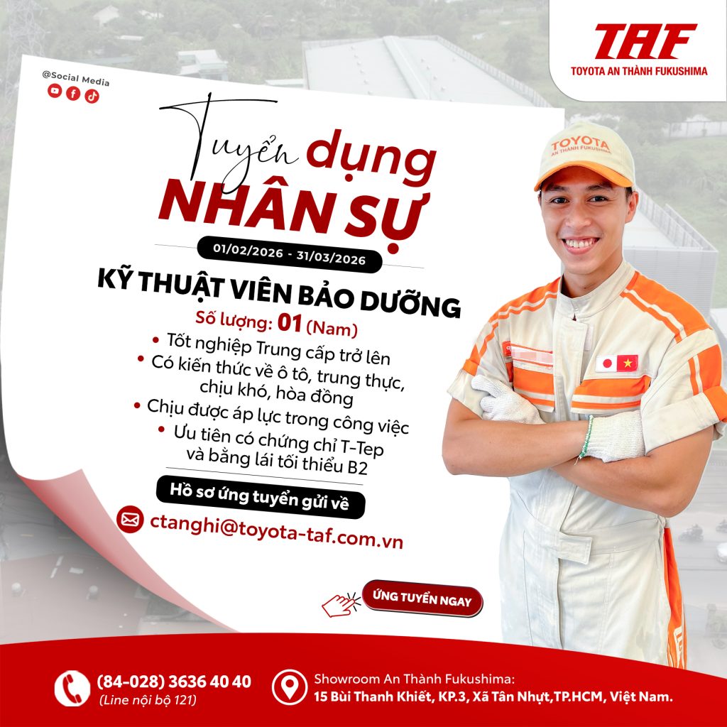 Toyota An Thành Fukushima – TAF đang có nhu cầu tuyển dụng từ 01.02.2026 đến 31.03.2026